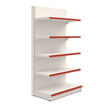 Shop shelf, 225x125 cm, Base 50 cm + 4 shelves 40 cm, white and red