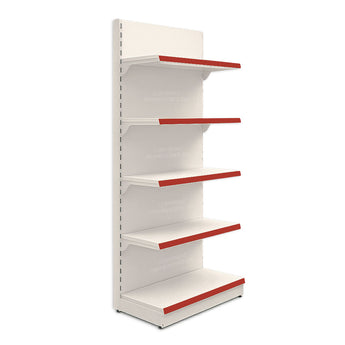 Shop shelf, 225x55 cm, Base 50 cm + 4 shelves 40 cm, white and red
