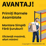 * Prețul afișat este pentru un singur modul și include: 1 montant (ramă) cu înălțimea de 250 cm, adâncimea de 60 cm și 4 nivele de traverse cu polițe metalice galvanizate.